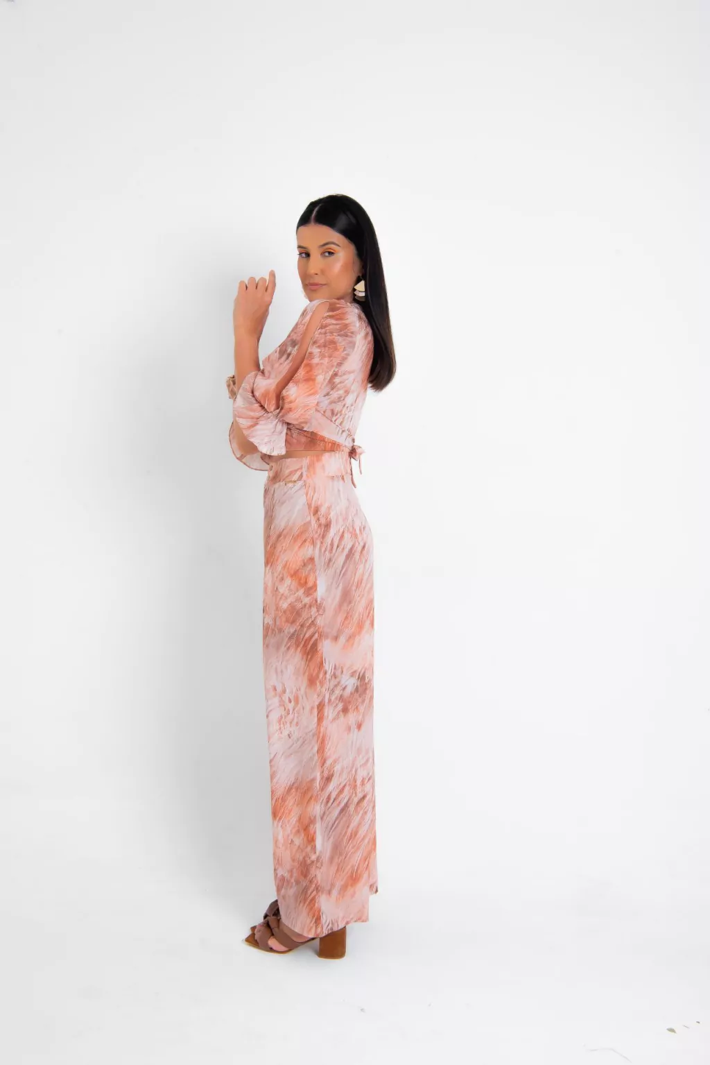 A calça feminina Buriti apresenta uma proposta elegante e moderna, com sua modelagem pantalona que confere fluidez e conforto. O abotoamento frontal, com botões forrados, adiciona um toque refinado à peça. Destacando-se ainda mais, a estampa exclusiva proporciona um visual único e autêntico.