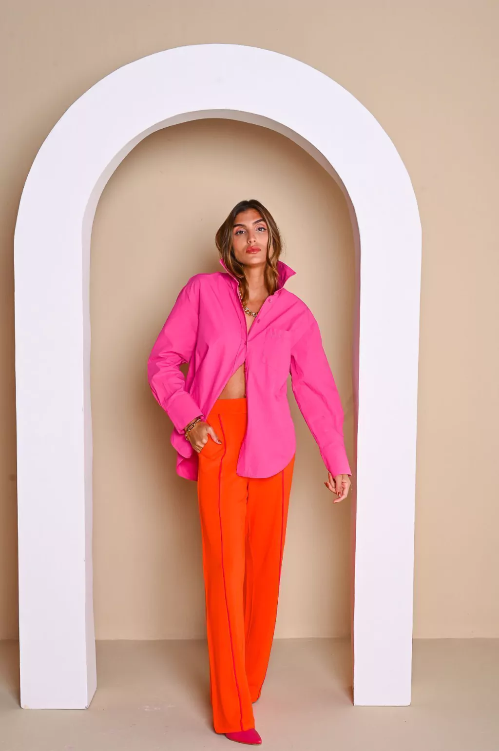 A calça Metropolitan é confeccionada em moletim, uma malha confortável e fresca. Possui modelagem wide lag que alonga a silhueta feminina, bolso tipo faca, aplicação de vivo colorido na parte da frente. É uma peça que pode ser combinada com o colete liberdade ou com regata street, t-shirts e o top moma. Sua modelagem garante um look elegante e atemporal para qualquer ocasião!