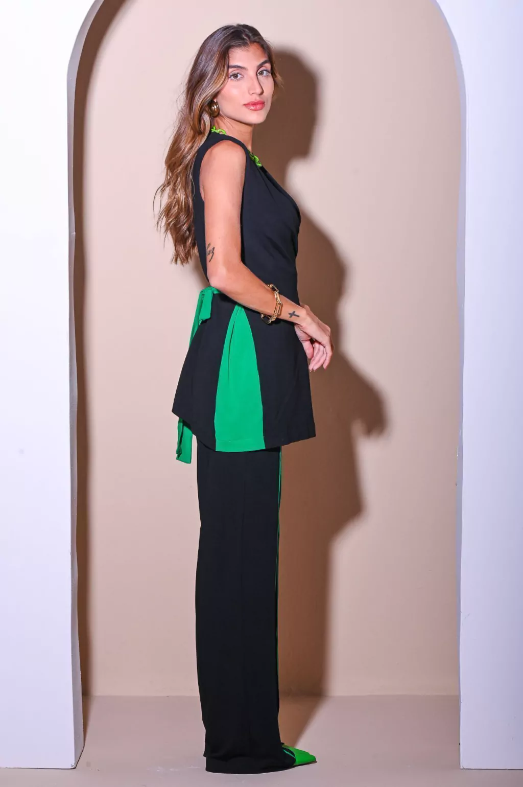 O colete liberdade é todo confeccionado em moletim, malha leve e confortável para qualquer ocasião. Essa peça foi pensada para ser bonita mas com conforto e praticidade, por isso ela conta com uma amarração do tipo "wrapdress", decote confortável, comprimento maior e que juntamente com a calça Metropolitan garantem um look elegante e prático. Ela conta ainda com ombreira para promover um desenho melhor da parte de cima e desenho assimétrico para as fashionistas de plantão. Se você é do tipo que não gosta muito de decotes aposte no top Moma (mesmo tecido) para garantir mais conforto. Composição: 97% viscose e 3% elastano