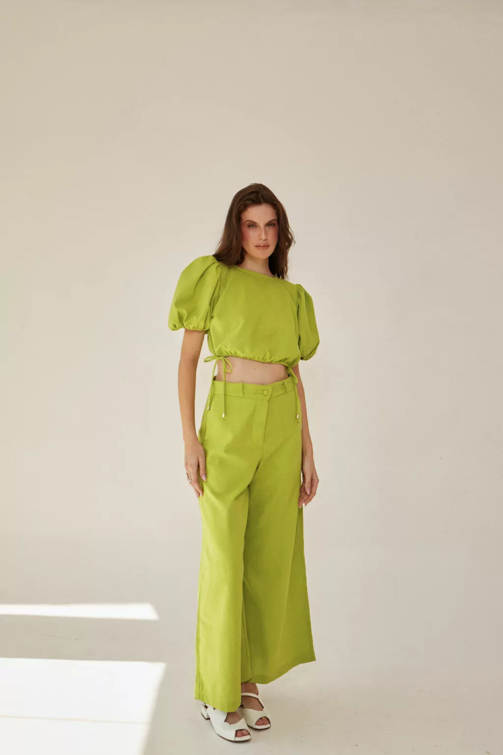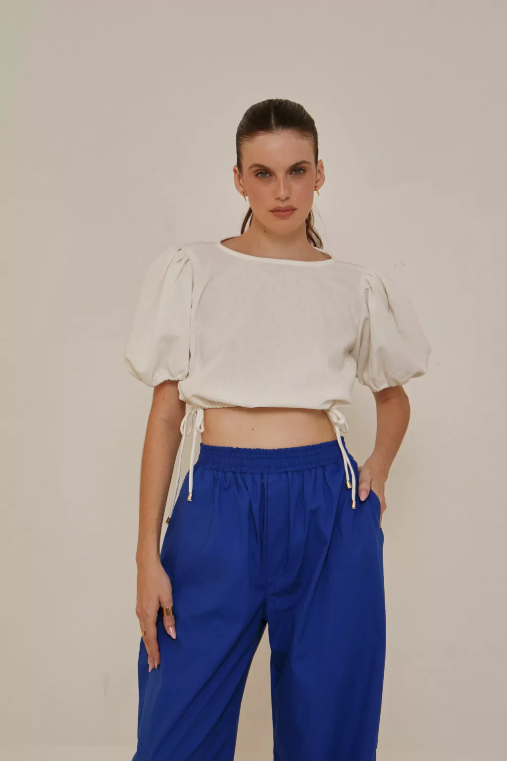 Cropped Serena destaca-se por sua modelagem prática. Aplicação de elástico nas mangas, conferindo ajuste confortável, mangas curtas e levemente bufantes, regulador com cordão na parte inferior, comprimento médio, fechamento traseiro com botão forrado. A composição do tecido é uma combinação equilibrada de viscose e linho, garantindo não apenas estilo, mas também conforto e elegância. Para um look monocromático aposte na combinação com a pantalona de mesmo tecido e cor.