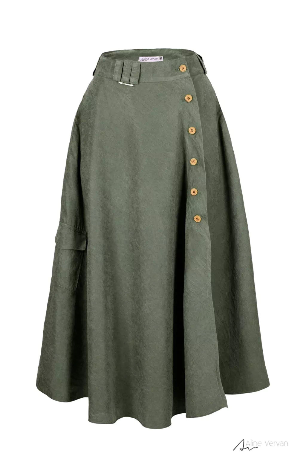 A Saia Sol é uma peça feminina e elegante que proporciona estilo e versatilidade. Com um comprimento midi, essa saia apresenta um fechamento frontal por botões, adicionando um toque charmoso ao design. Disponível em cores lisas, com duas opções encantadoras, a saia destaca-se pela sua assimetria, conferindo um visual moderno.