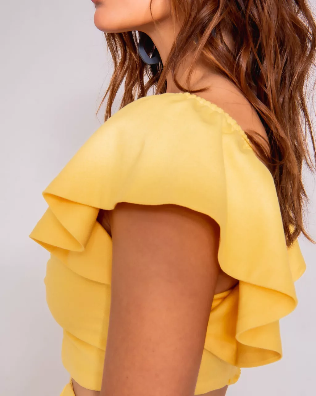 Top de linho asas é todo confeccionado em viscolinho, uma mistura de viscose (conforto e frescor) e linho que agrega beleza e peso. Seu decote frontal valoriza o colo feminino sem perder a elegância. Manga com babado, aplicação de lastéx na parte de trás para melhor vestibilidade e conforto. Quer caprichar ainda mais no look? Combine com a saia midi Copa ou a saia midi Nativa.