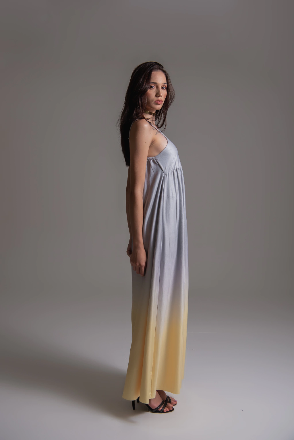 Vestido longo Olívia tem modelagem solta e ampla. Decote com desenho mais quadrado, alças confortáveis com reguladores, aplicação de elástico nas costas garantindo melhor conforto e vestibilidade. Peça toda confeccionada em Suede acetinado. Sem forro